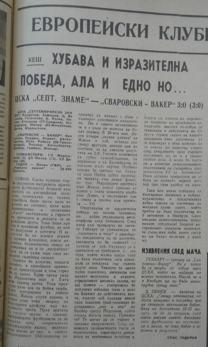 «ЦСКА Септемврийско Знаме» София - «Сваровски-Ваккер» Инсбрук - 3:0