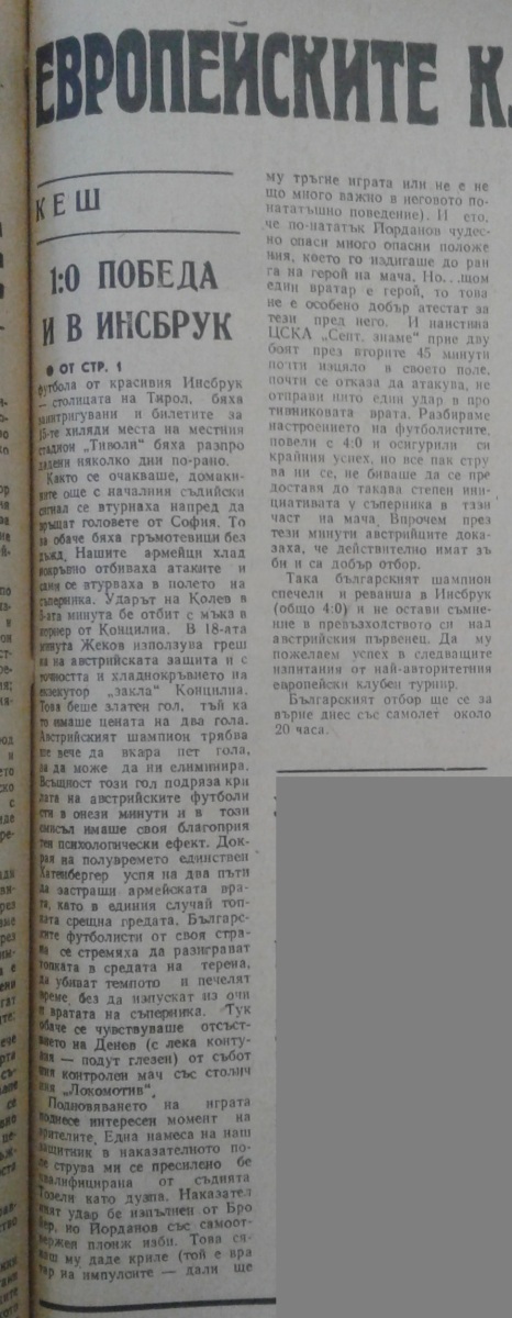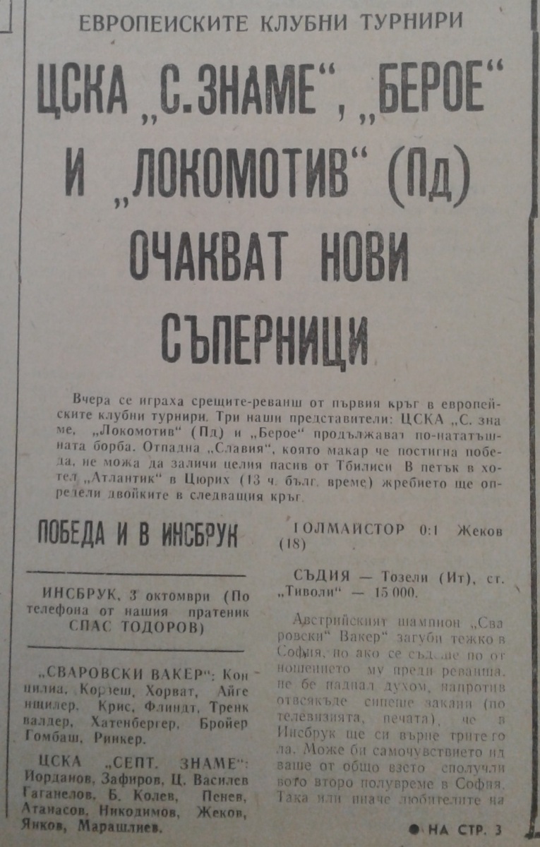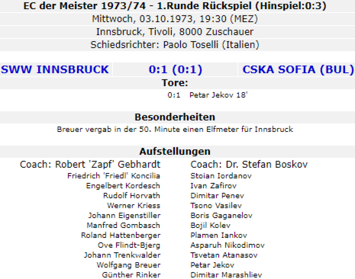 «Сваровски-Ваккер» Инсбрук - «ЦСКА Септемврийско Знаме» София - 0:1