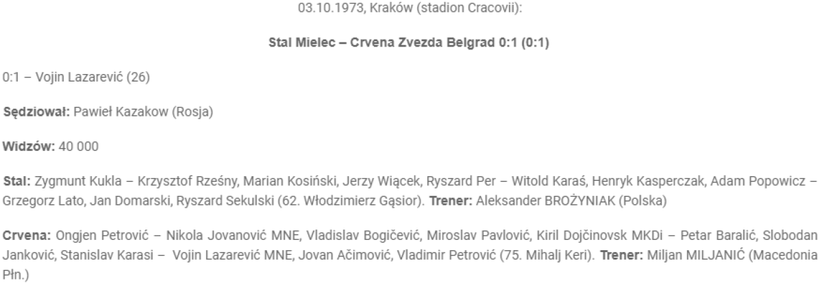 «Сталь» Мелец - «Црвена Звезда» Белград - 0:1