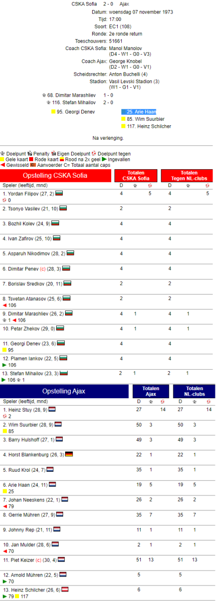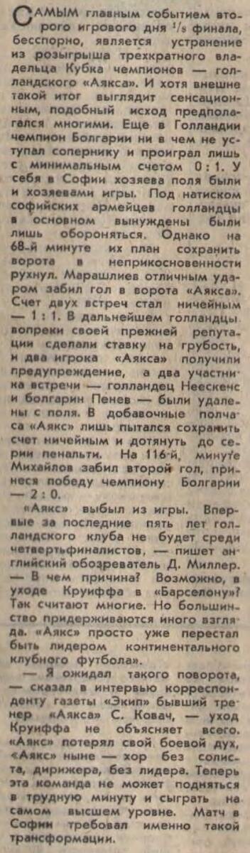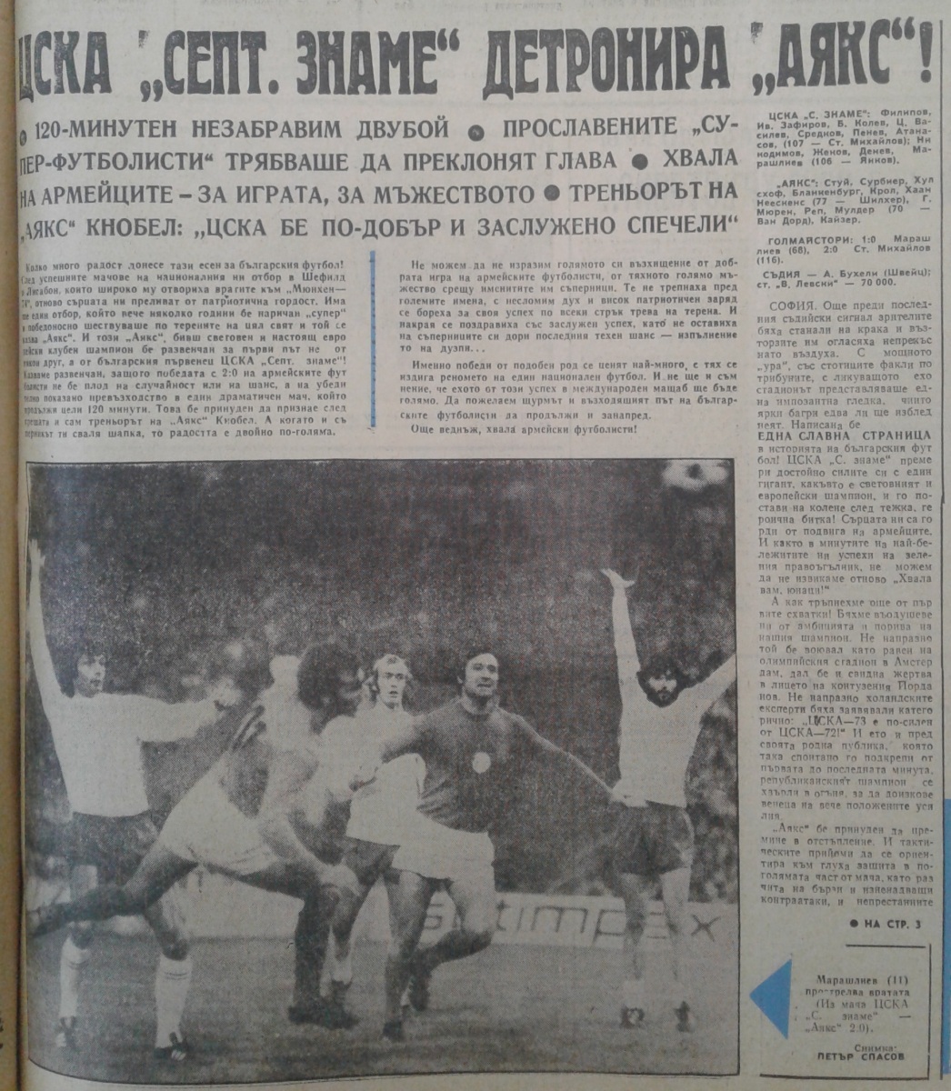 «ЦСКА Септемврийско Знаме» София - «Аякс» Амстердам - 2:0