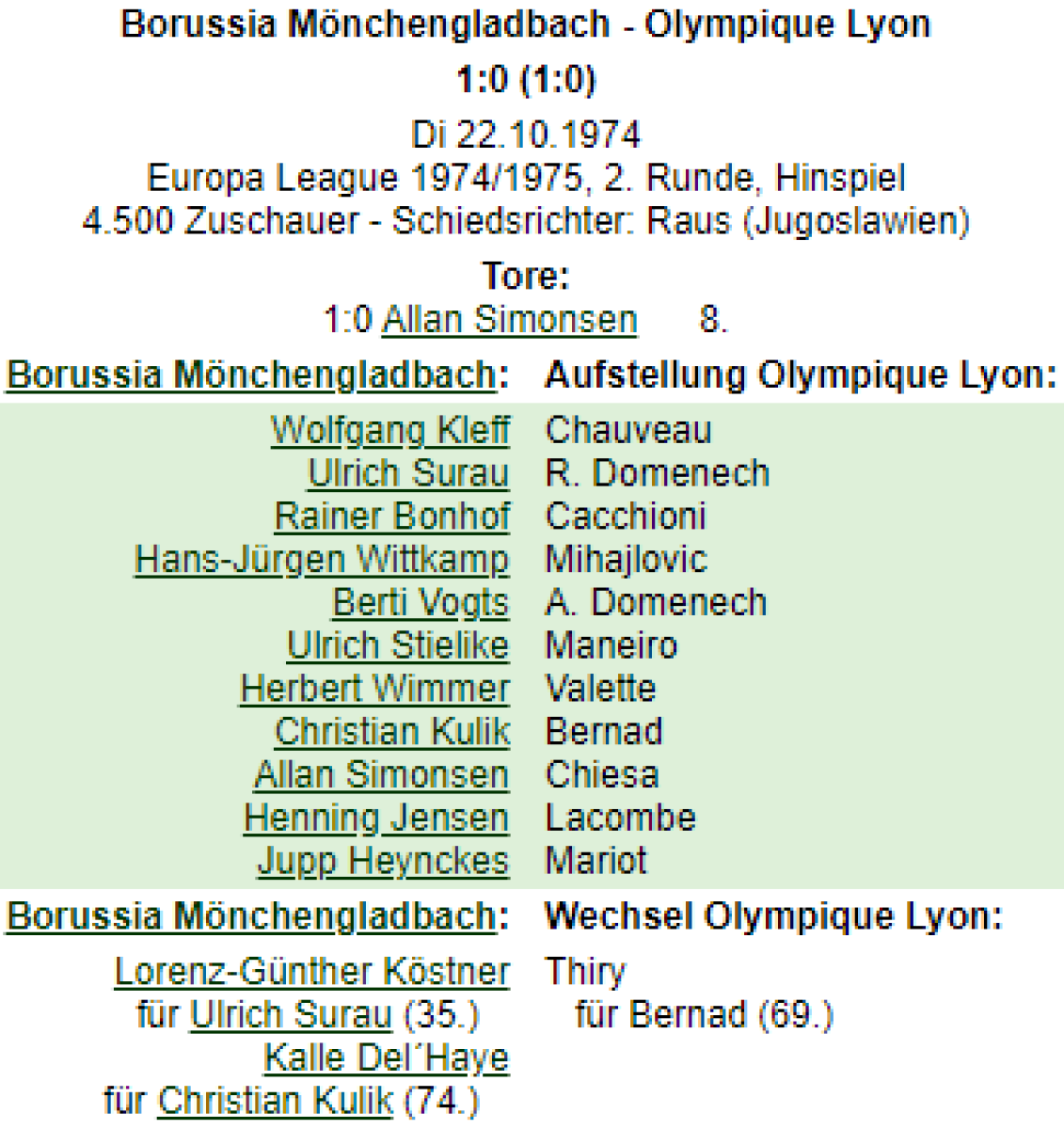 «Боруссия» Мёнхенгладбах - «Олимпик» Лион - 1:0
