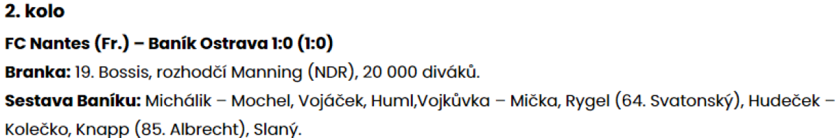 «Нант» Нант - «Баник» Острава - 1:0