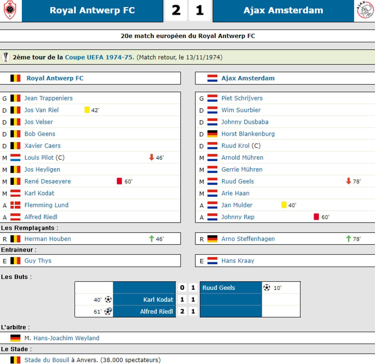«Роял Антверп» Антверпен - «Аякс» Амстердам - 2:1