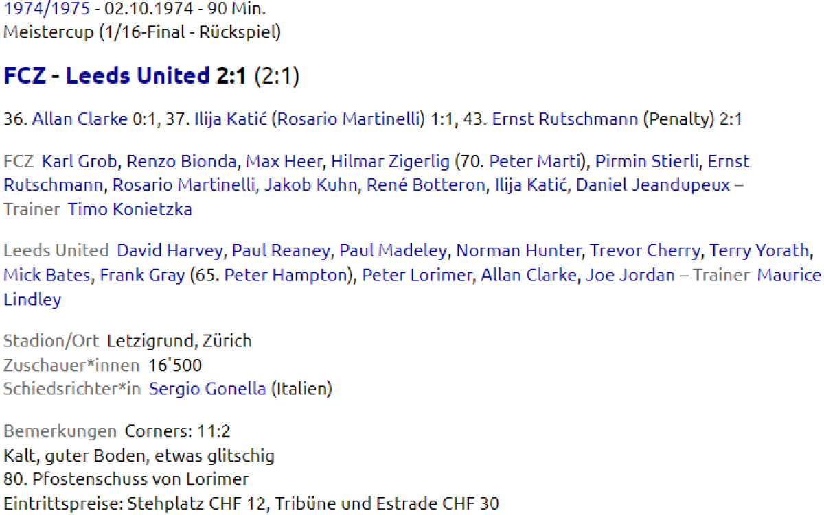 «Цюрих» Цюрих - «Лидс Юнайтед» Лидс - 2:1