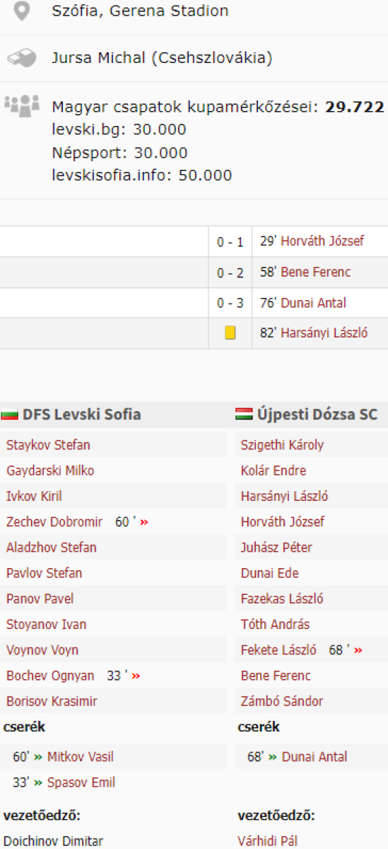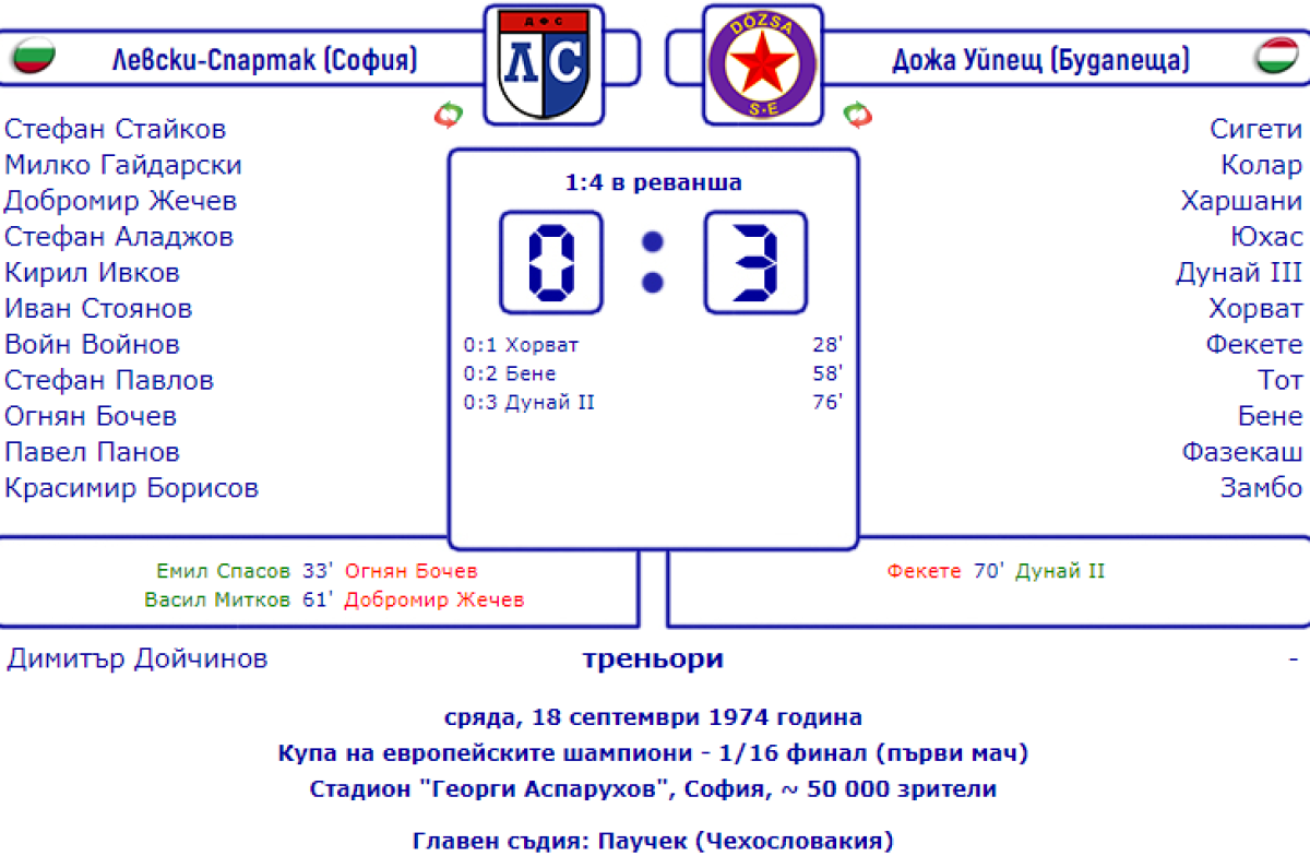 «Левски-Спартак» София - «Уйпешт Дожа» Будапешт - 0:3