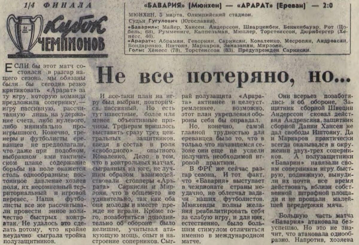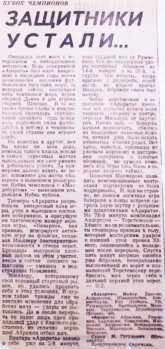 «Бавария» Мюнхен - «Арарат» Ереван - 2:0