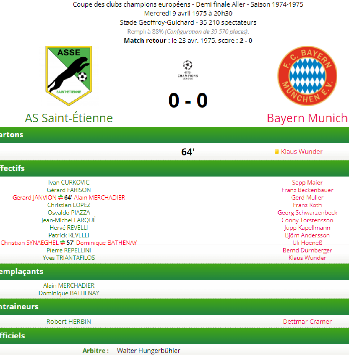 «Сент-Этьен» Сент-Этьен - «Бавария» Мюнхен - 0:0