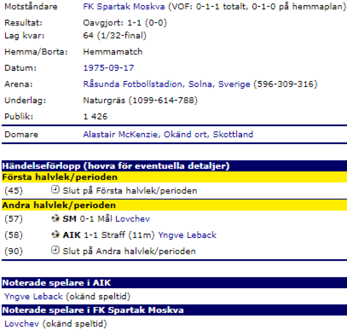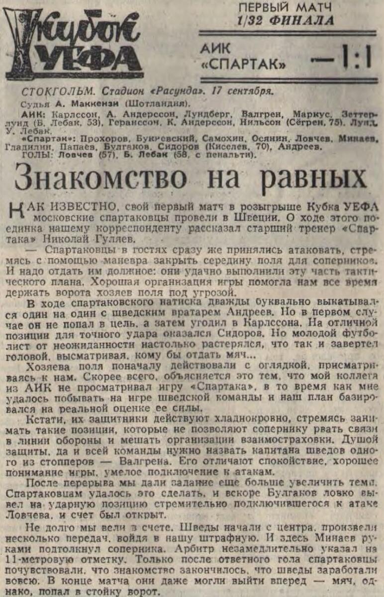 АИК Стокгольм - «Спартак» Москва - 1:1