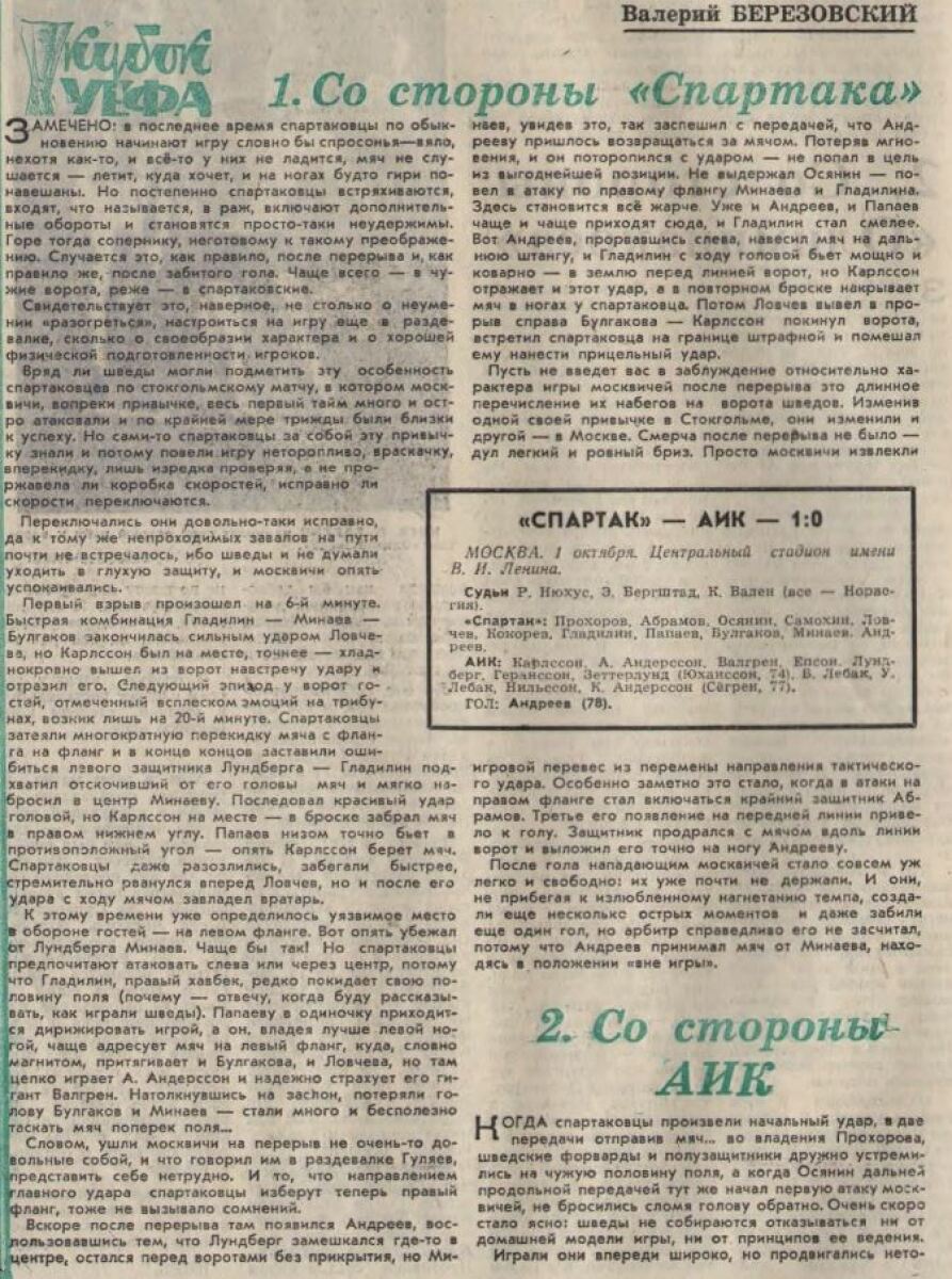 «Спартак» Москва - АИК Стокгольм - 1:0