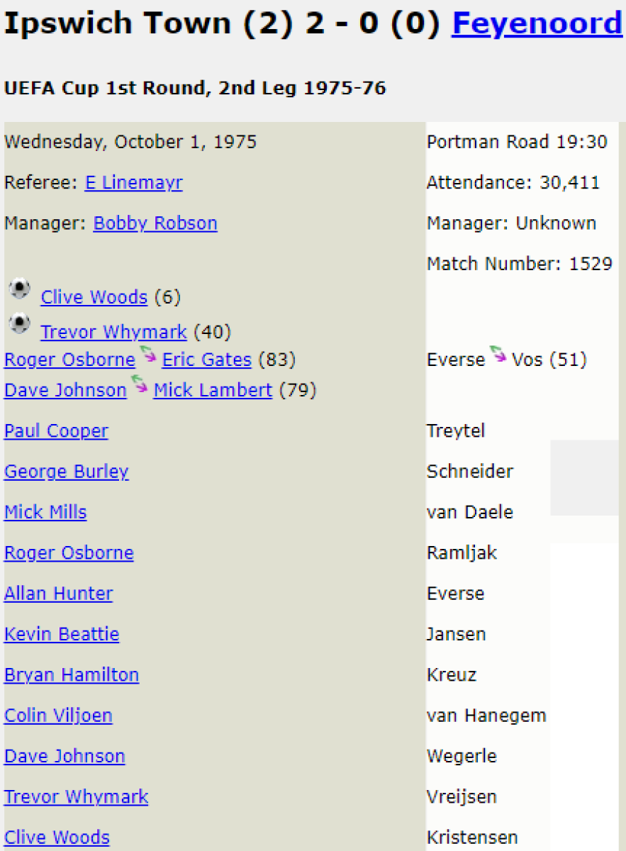«Ипсвич Таун» Ипсвич - «Фейеноорд» Роттердам - 2:0