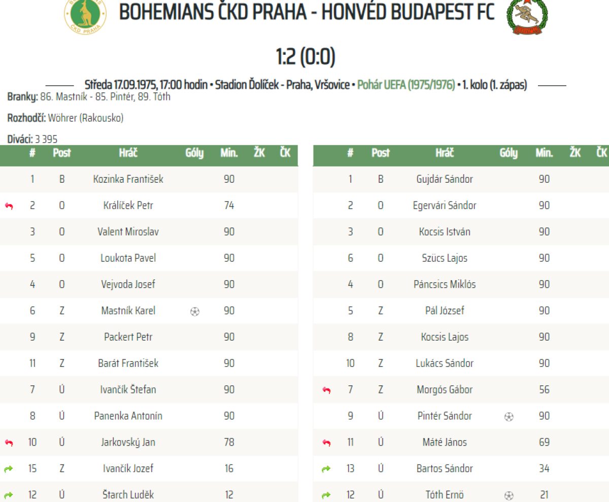 «Богемианс-ЧКД» Прага - «Гонвед» Будапешт - 1:2