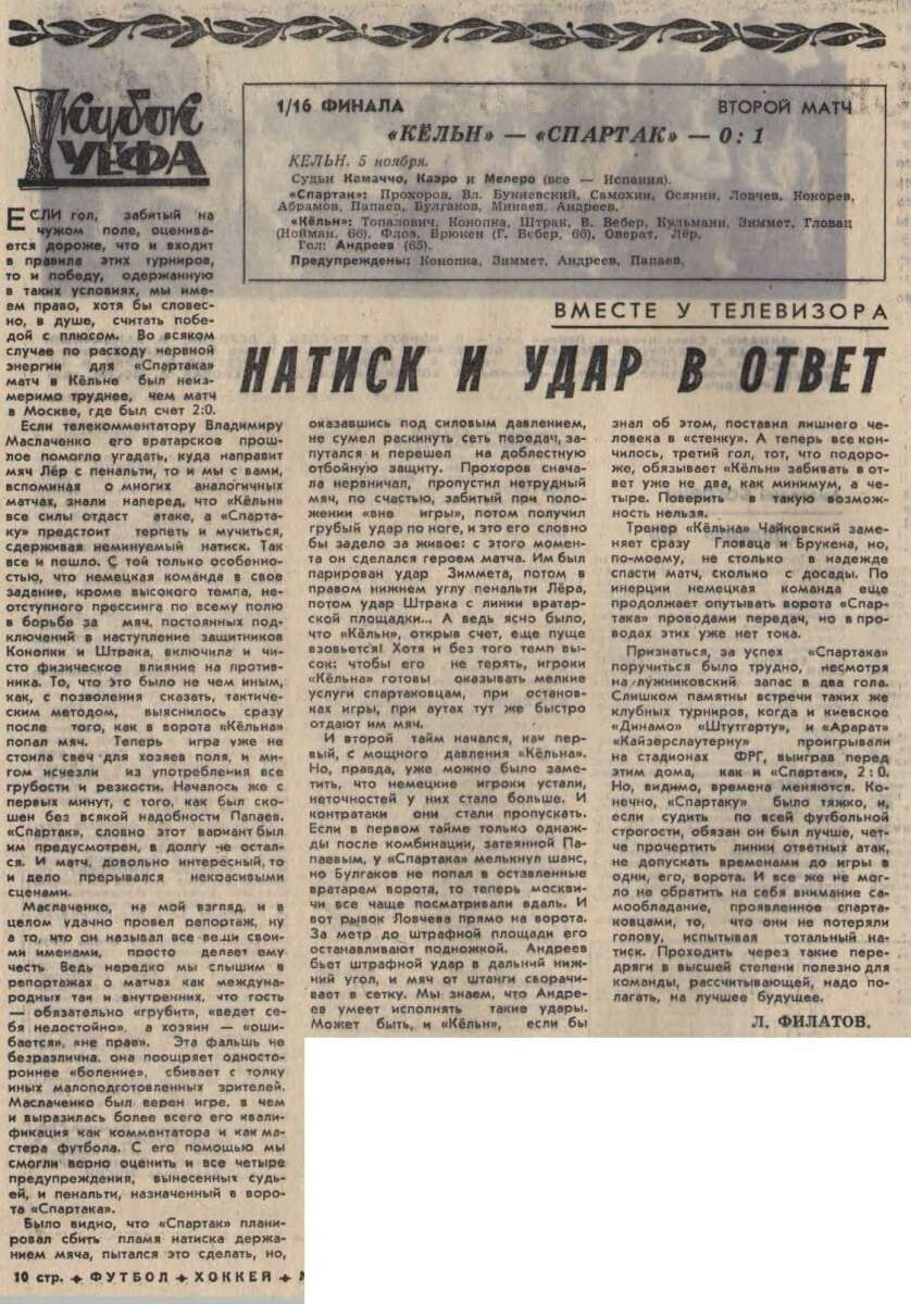 «1. ФК Кёльн» Кёльн - «Спартак» Москва - 0:1