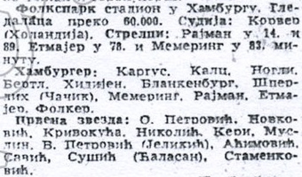 «Гамбургер» Гамбург - «Црвена Звезда» Белград - 4:0
