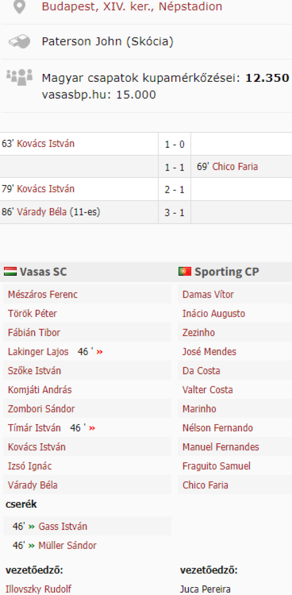 «Вашаш» Будапешт - «Спортинг» Лиссабон - 3:1