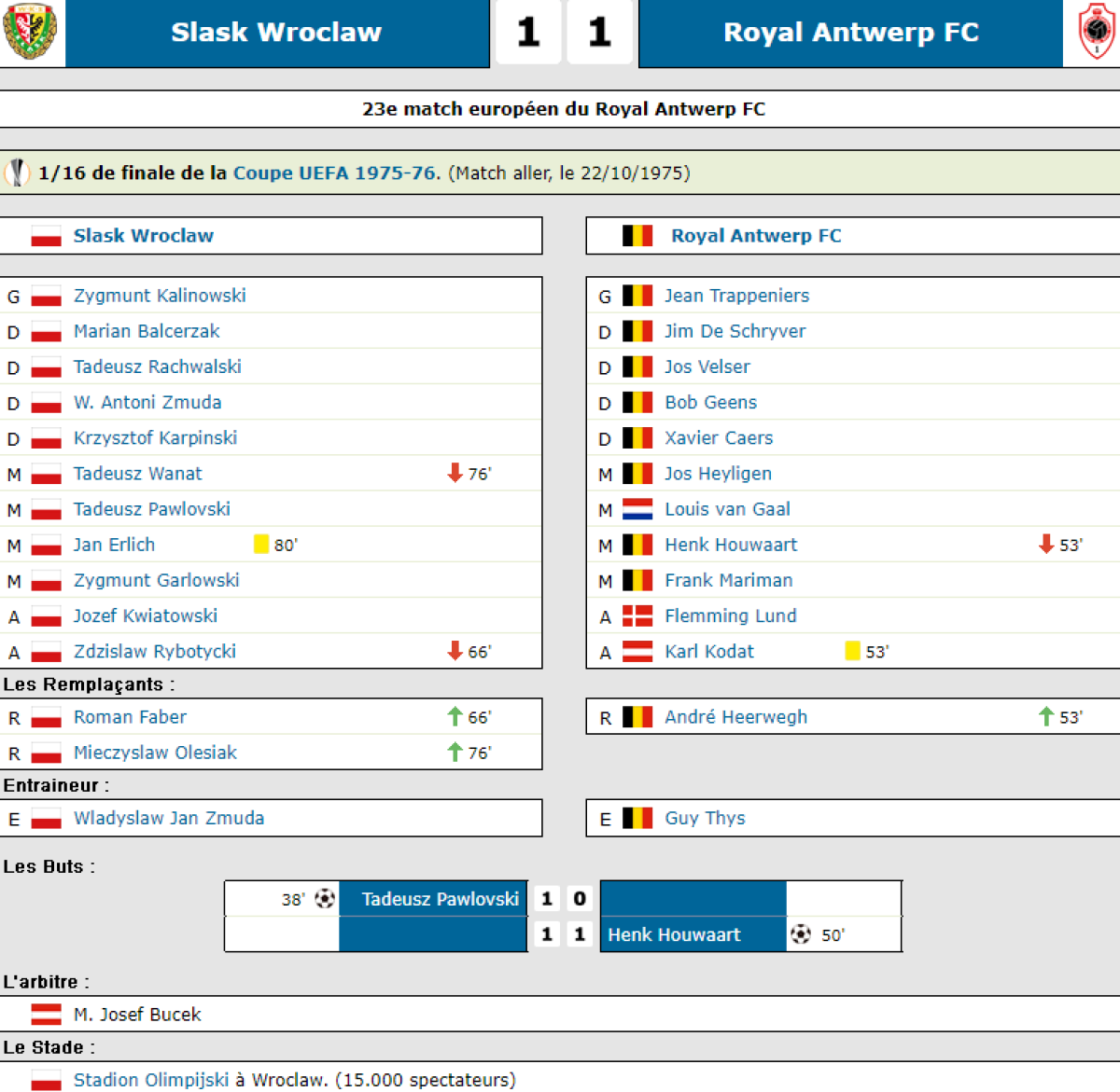 «Шлёнск» Вроцлав - «Роял Антверп» Антверпен - 1:1