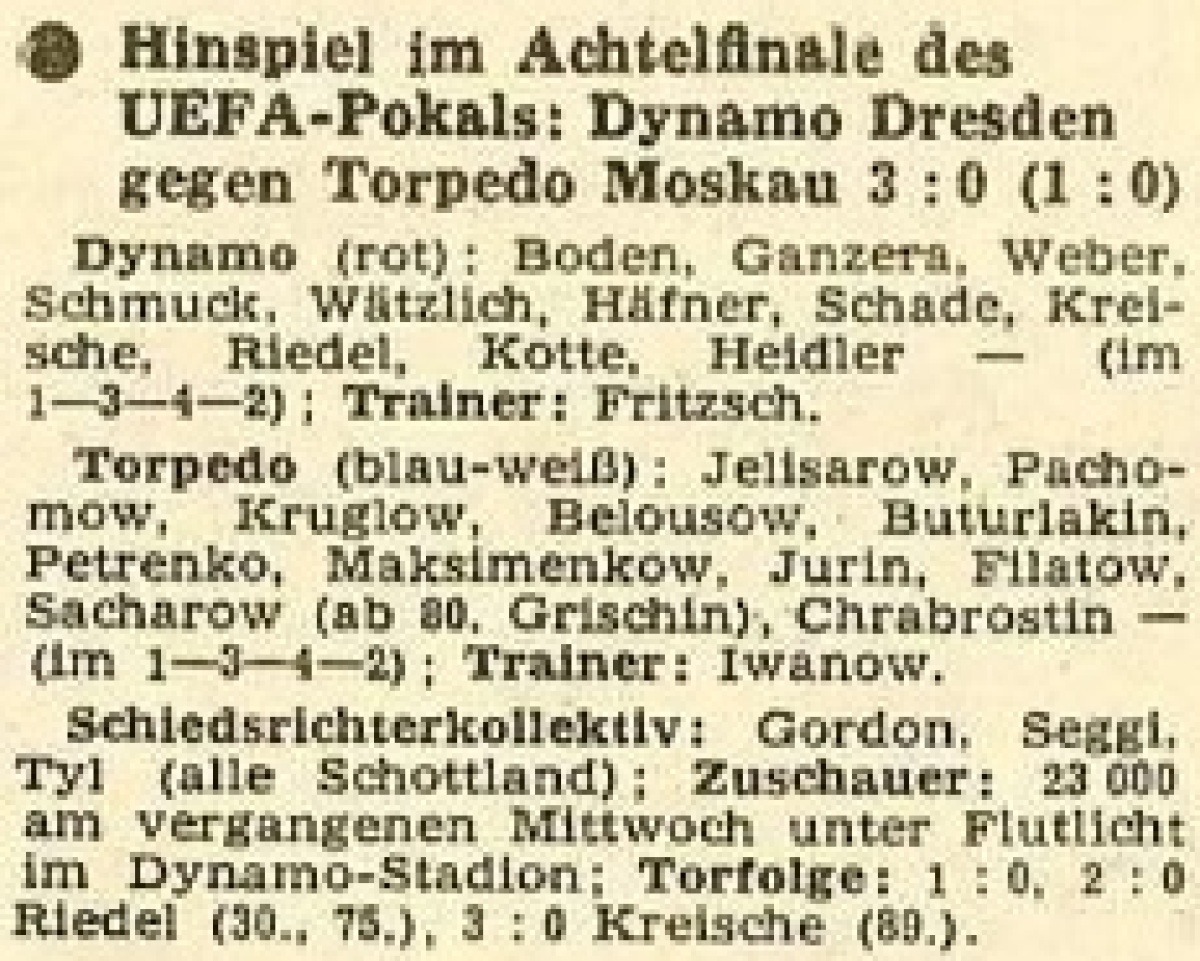 «Динамо» Дрезден - «Торпедо» Москва - 3:0