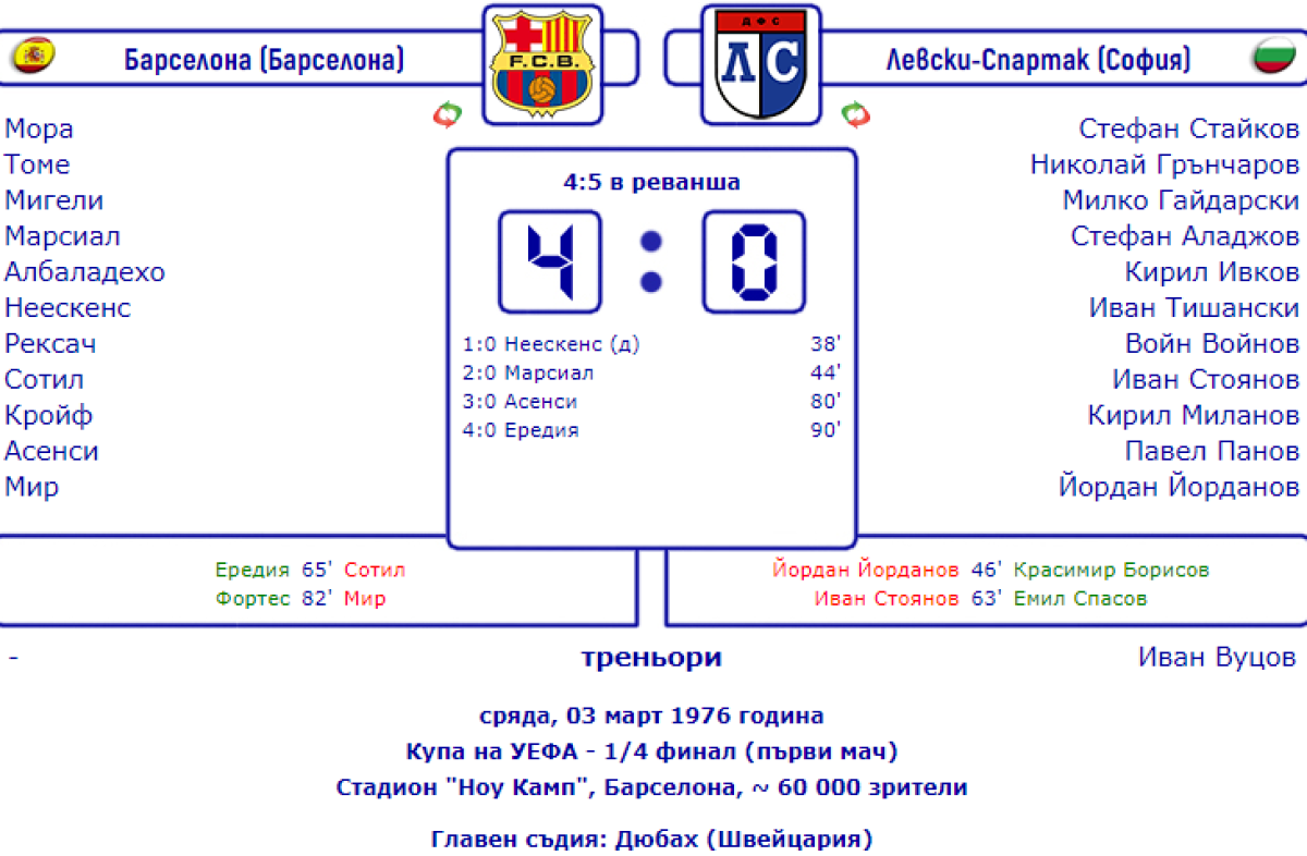 «Барселона» Барселона - «Левски-Спартак» София - 4:0