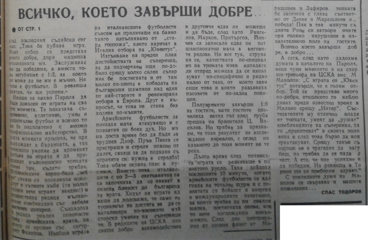«ЦСКА Септемврийско Знаме» София - «Ювентус» Турин - 2:1