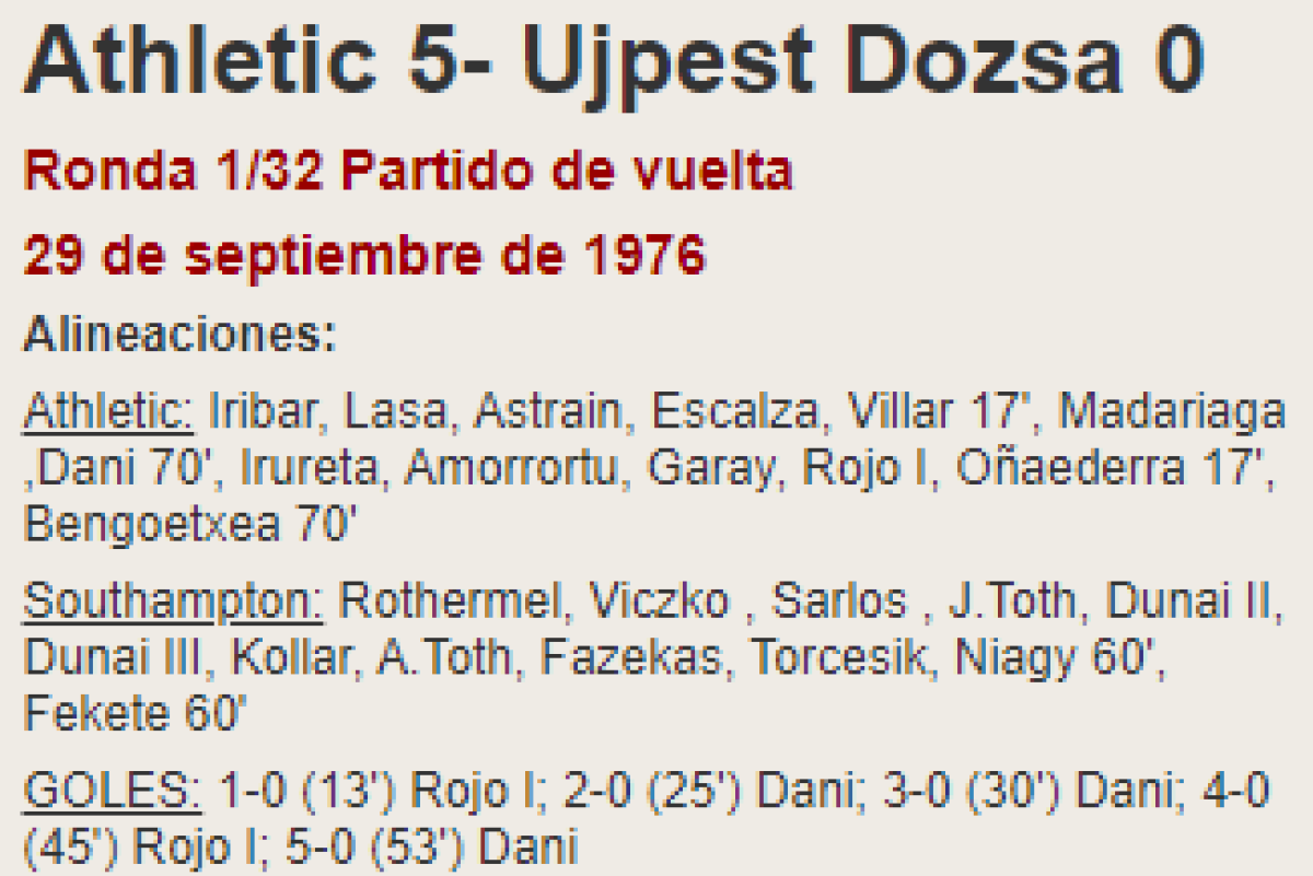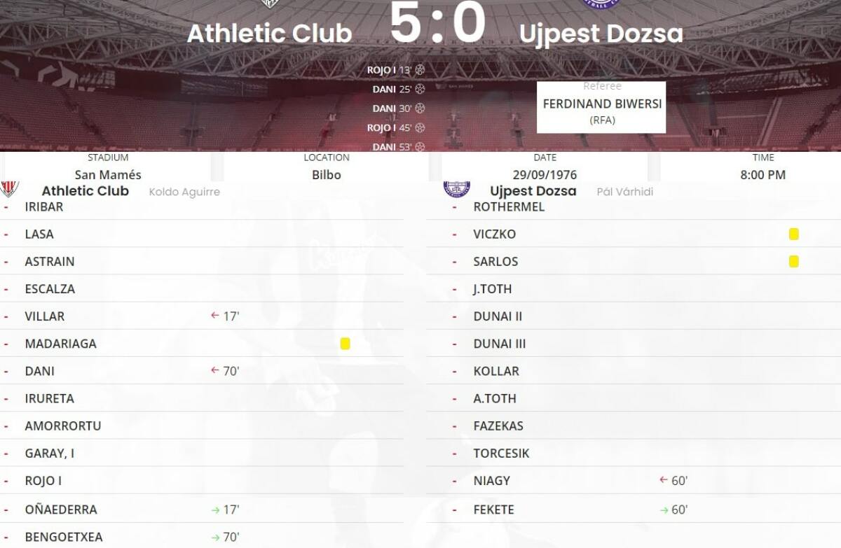 «Атлетик Клуб де Бильбао» Бильбао - «Уйпешт Дожа» Будапешт - 5:0