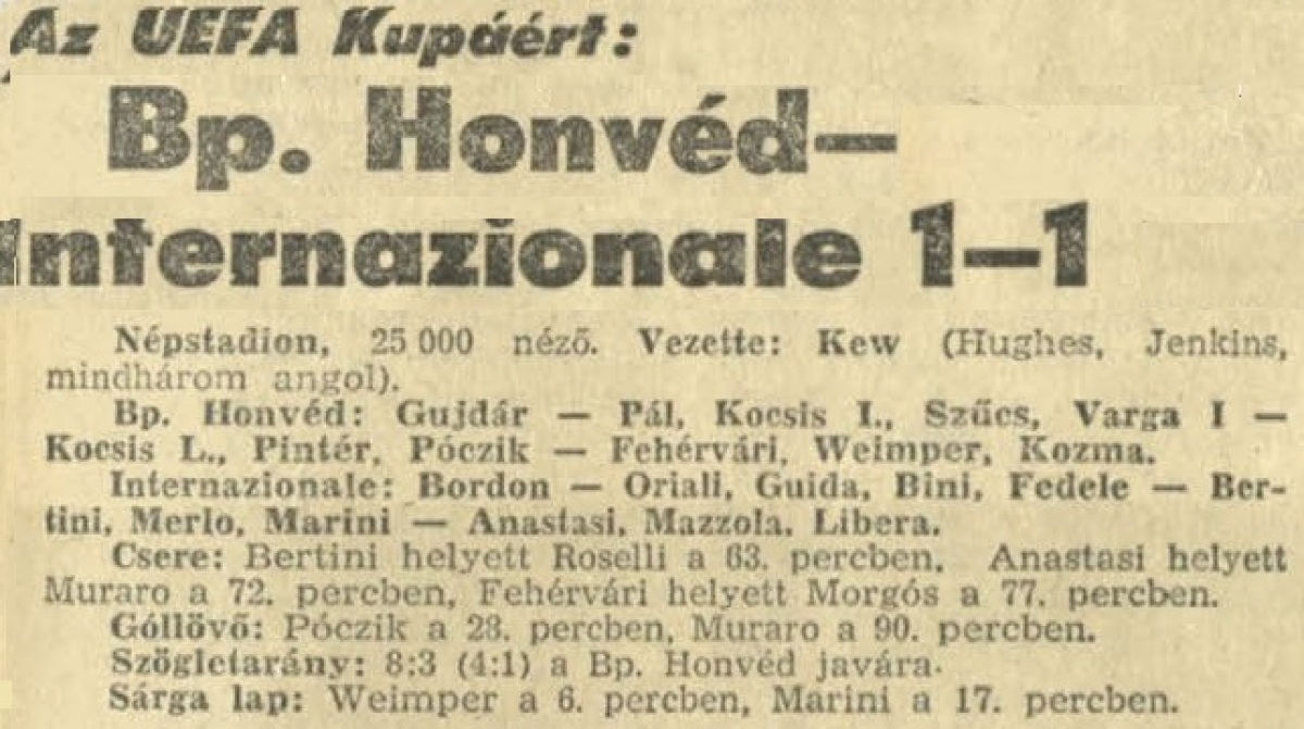 «Гонвед» Будапешт - «Интернационале» Милан - 1:1