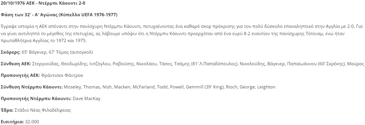 АЕК Афины - «Дерби Каунти» Дерби - 2:0