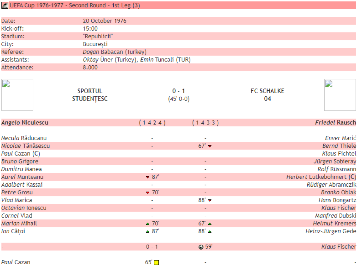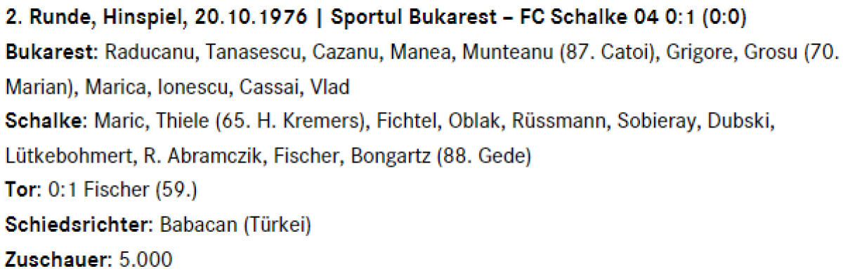 «Спортул-Студенцеск» Бухарест - «Шальке-04» Гельзенкирхен - 0:1