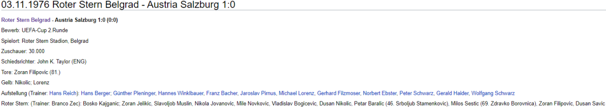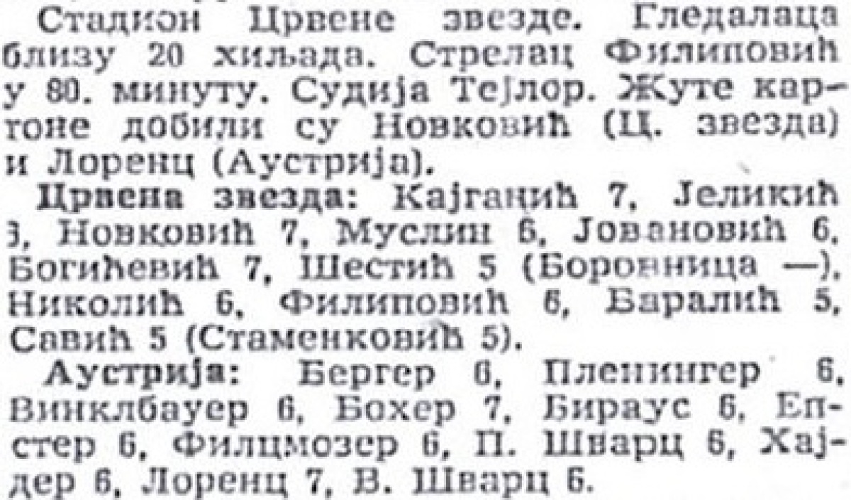 «Црвена Звезда» Белград - «Аустрия» Зальцбург - 1:0