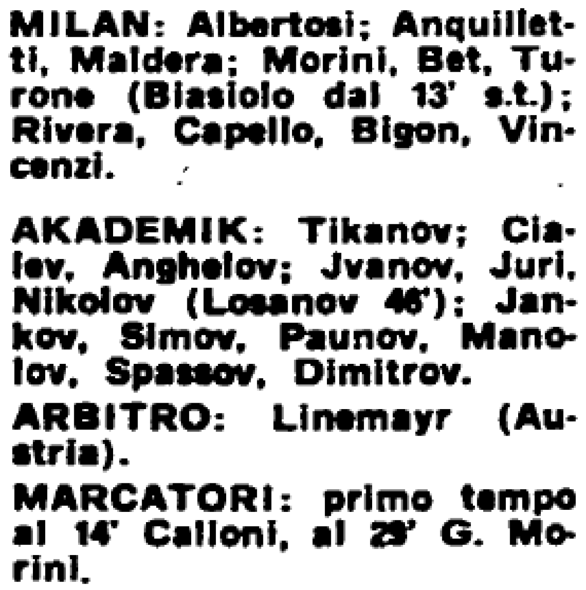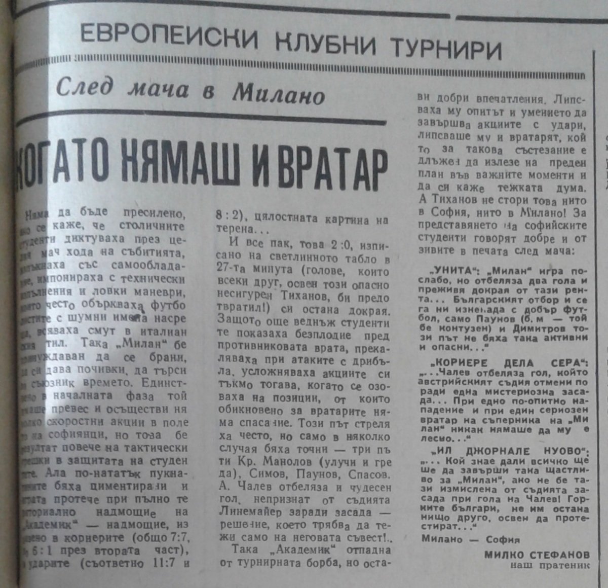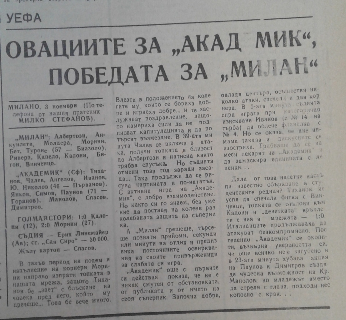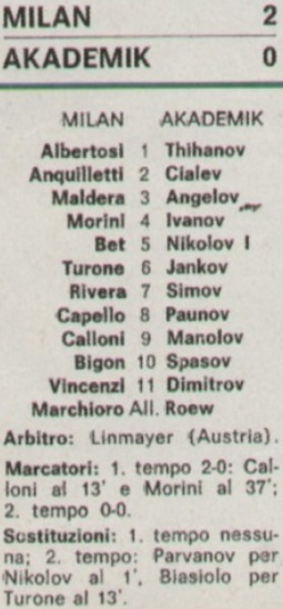 «Милан» Милан - «Академик» София - 2:0