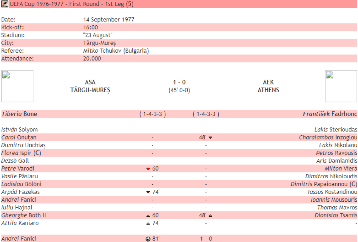 АСА Тыргу-Муреш - АЕК Афины - 1:0