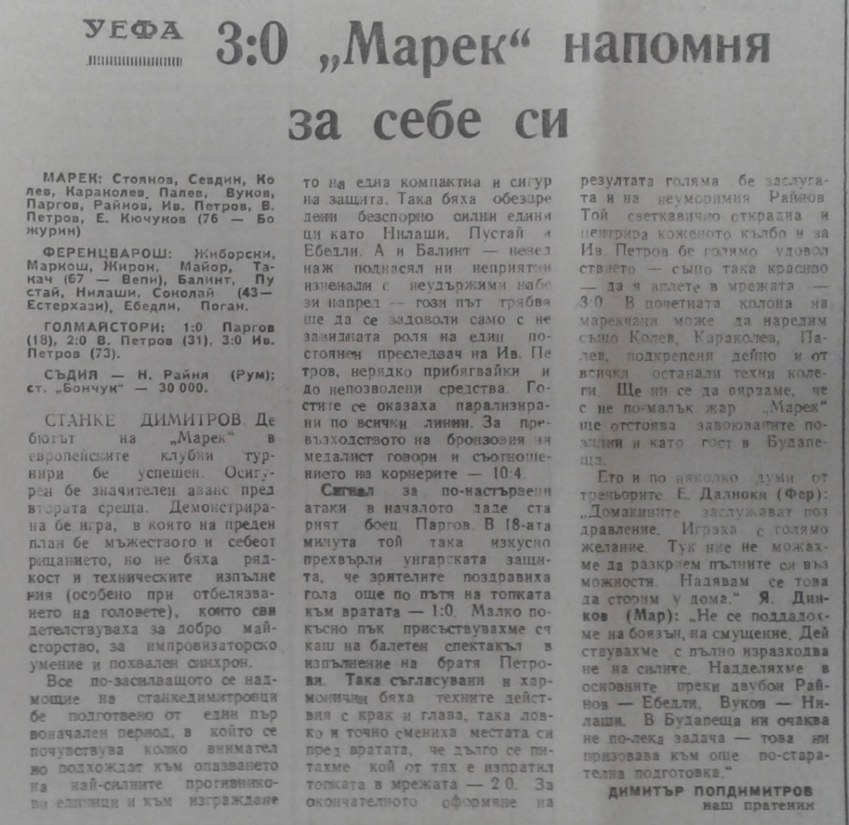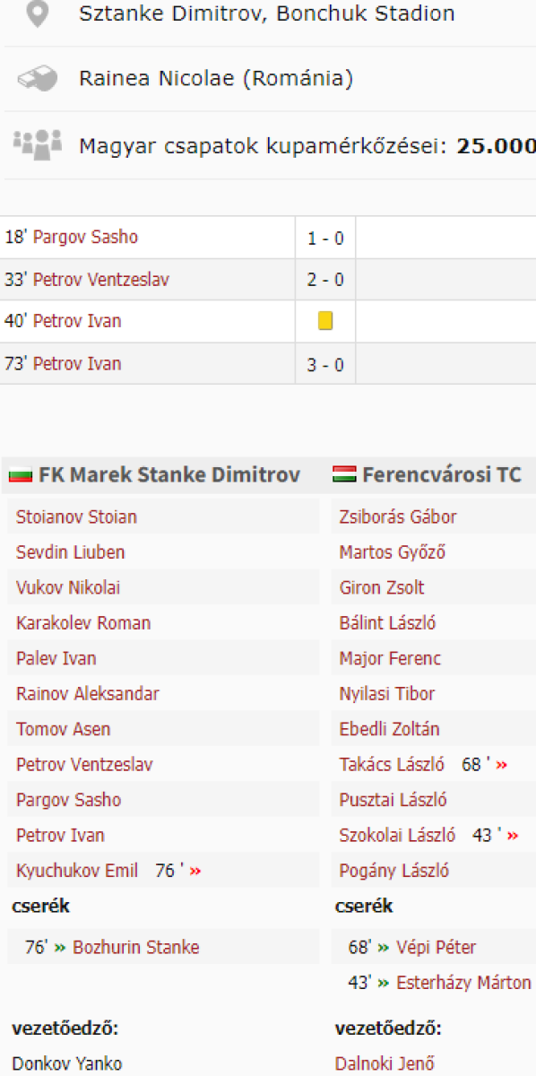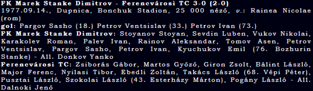 «Марек» Станке-Димитров - «Ференцварош» Будапешт - 3:0
