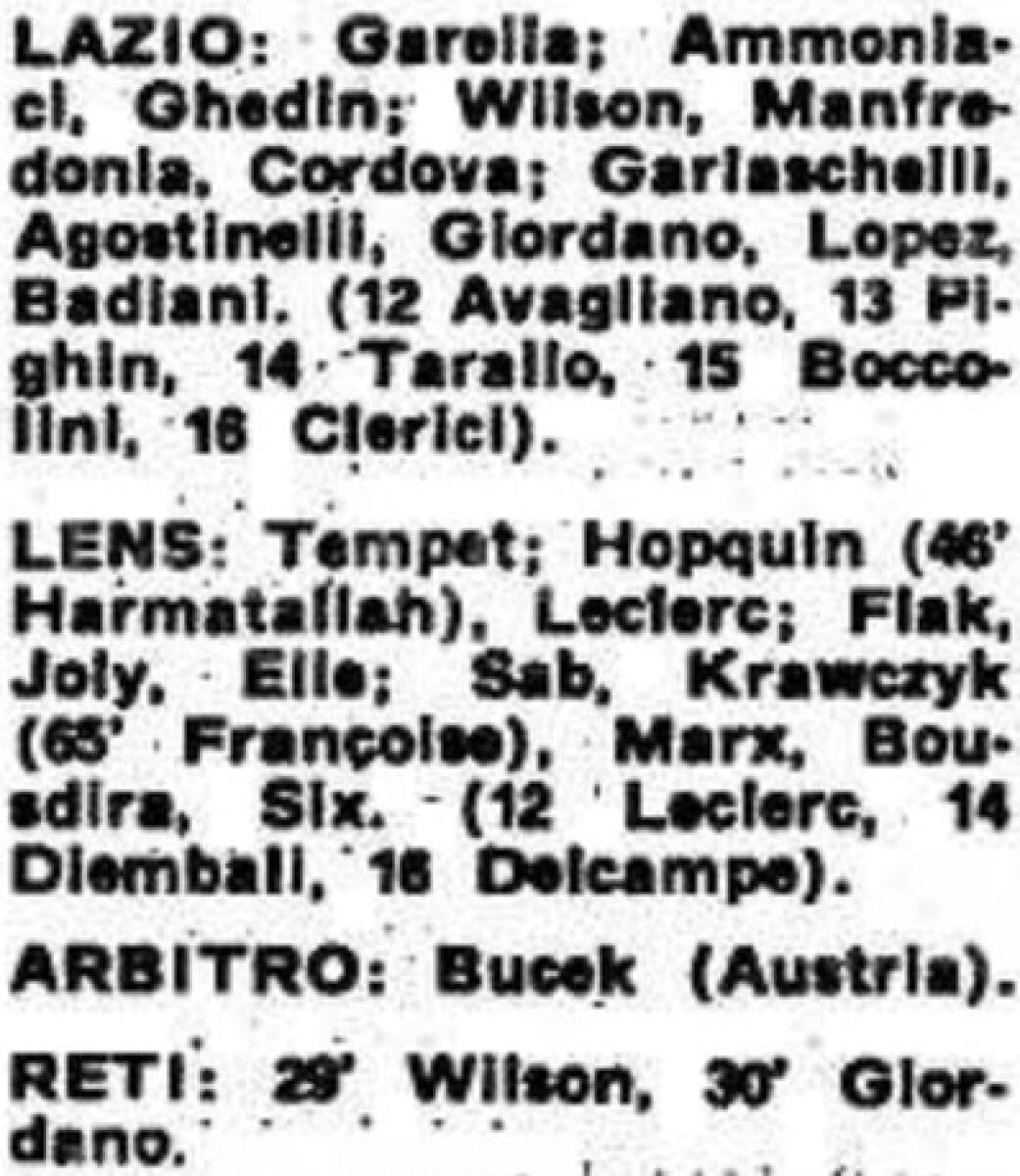 «Лацио» Рим - «Расинг» Ланс - 2:0