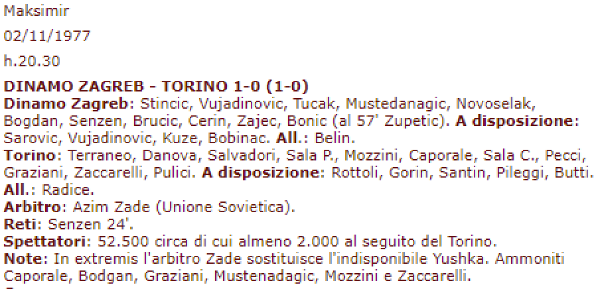 «Динамо» Загреб - «Торино Кальчо» Турин - 1:0