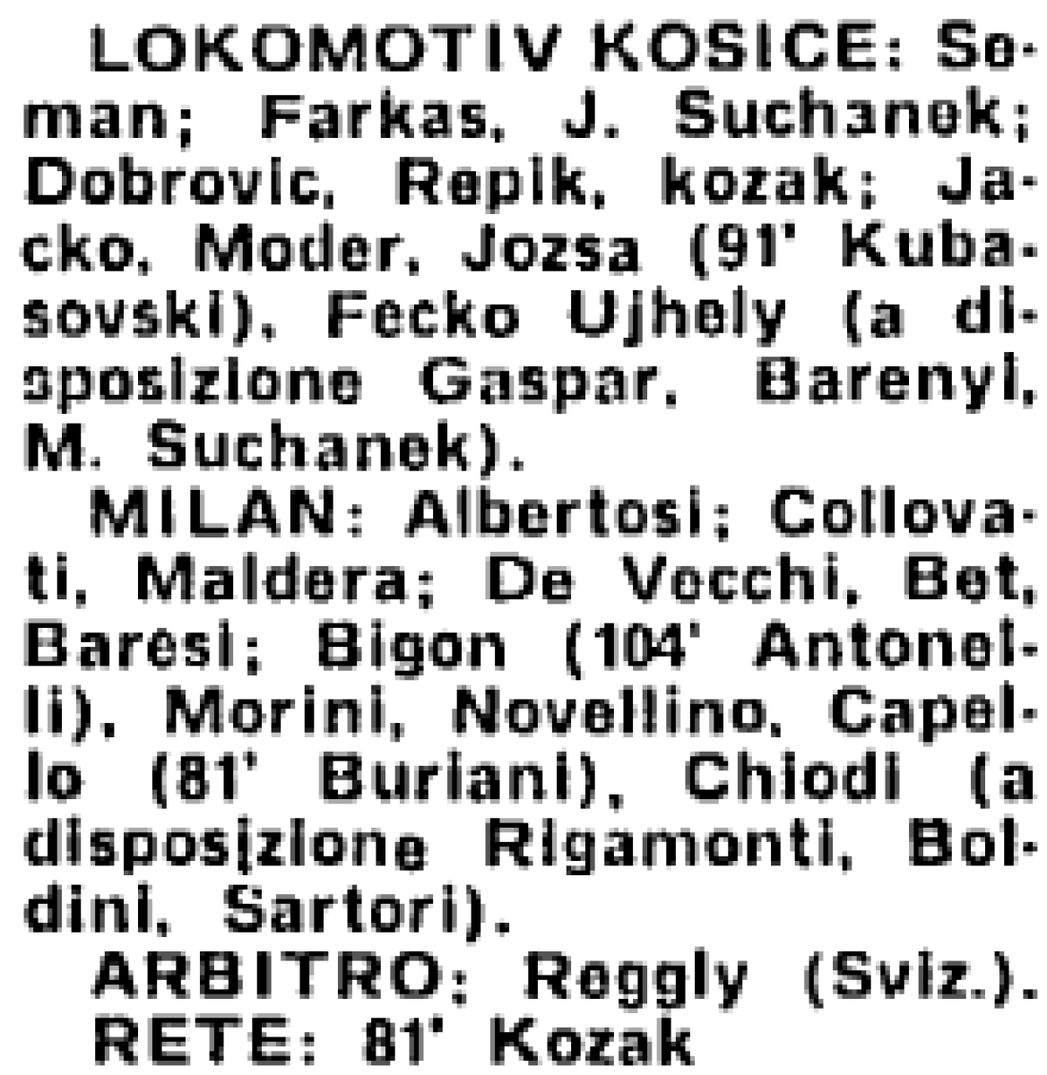 «Локомотива» Кошице - «Милан» Милан - 1:0