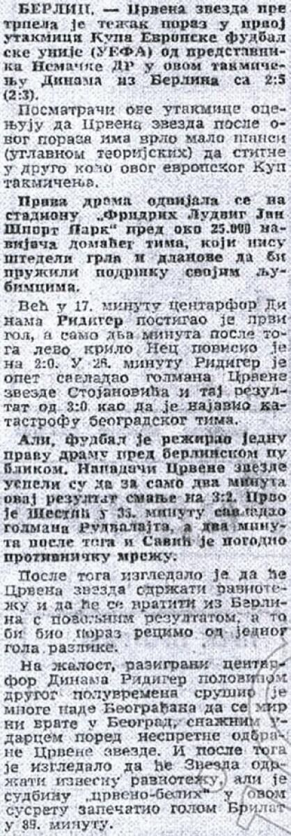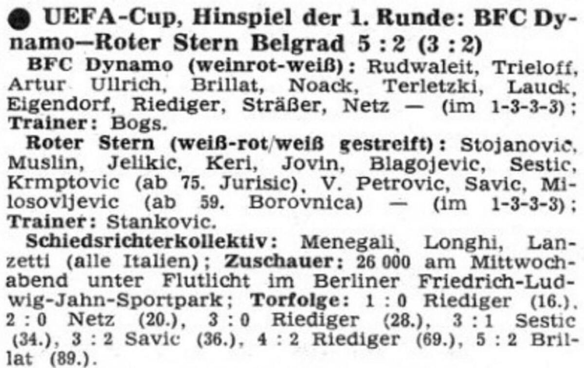 «Динамо» Берлин - «Црвена Звезда» Белград - 5:2