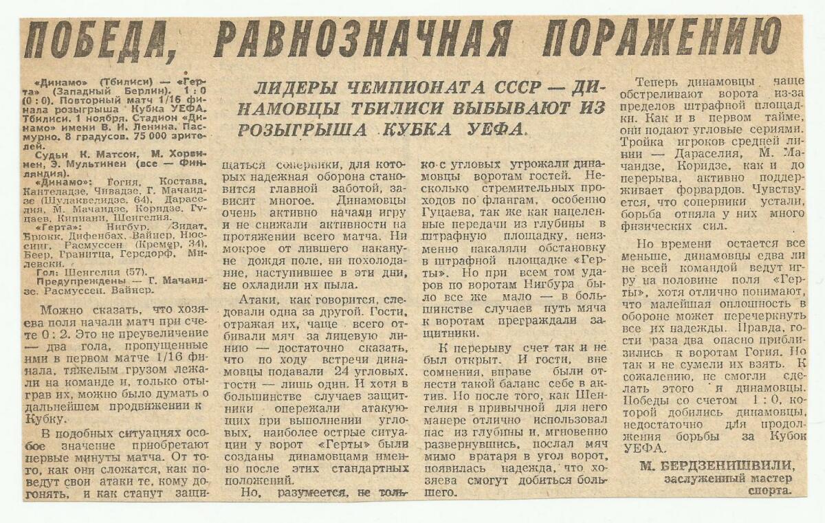 «Динамо» Тбилиси - «Герта» Западный Берлин - 1:0