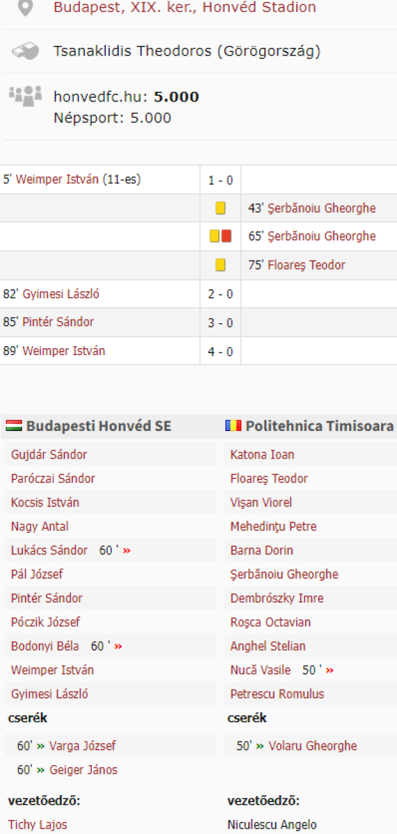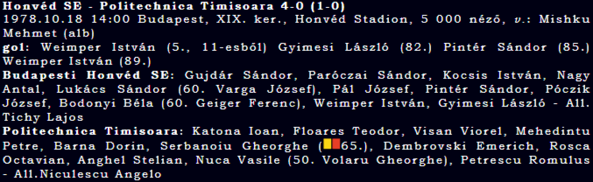 «Гонвед» Будапешт - «Политехника» Тимишоара - 4:0