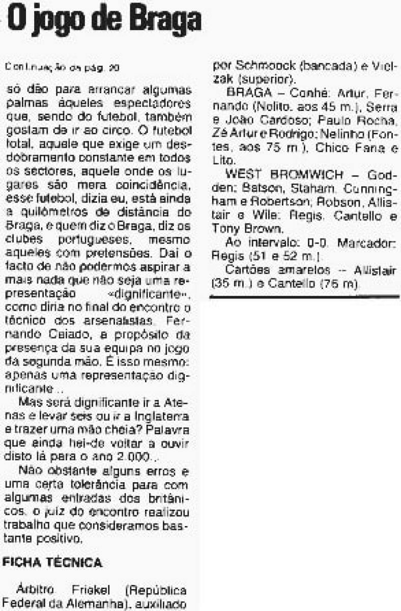 «Спортинг» Брага - «Вест Бромвич Альбион» Уэст-Бромидж - 0:2