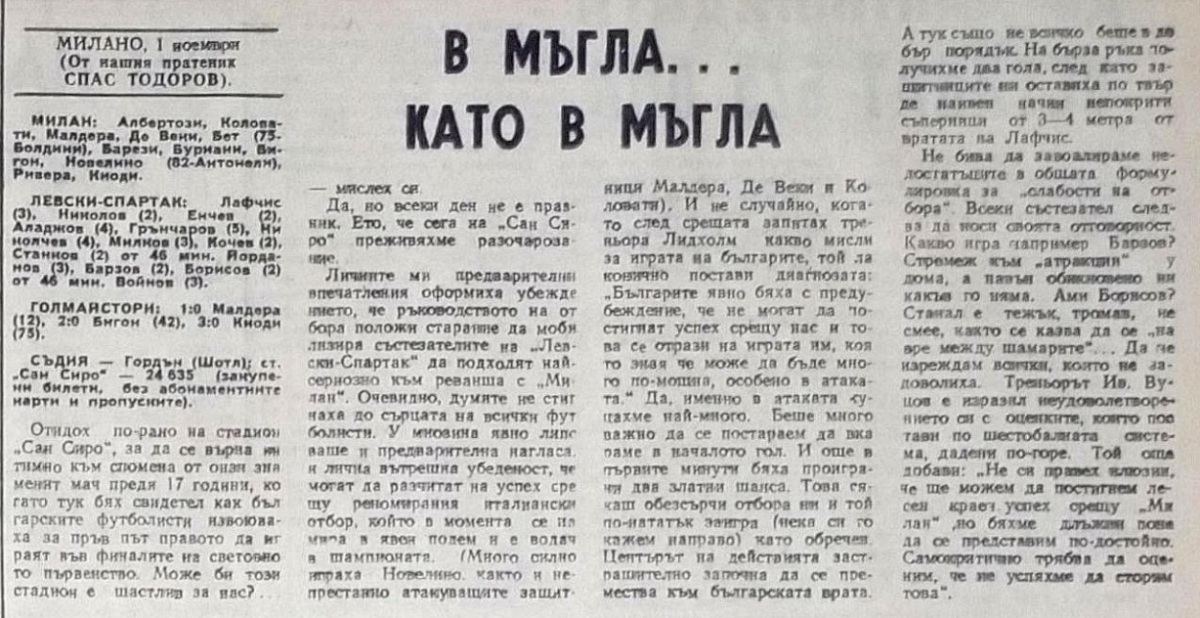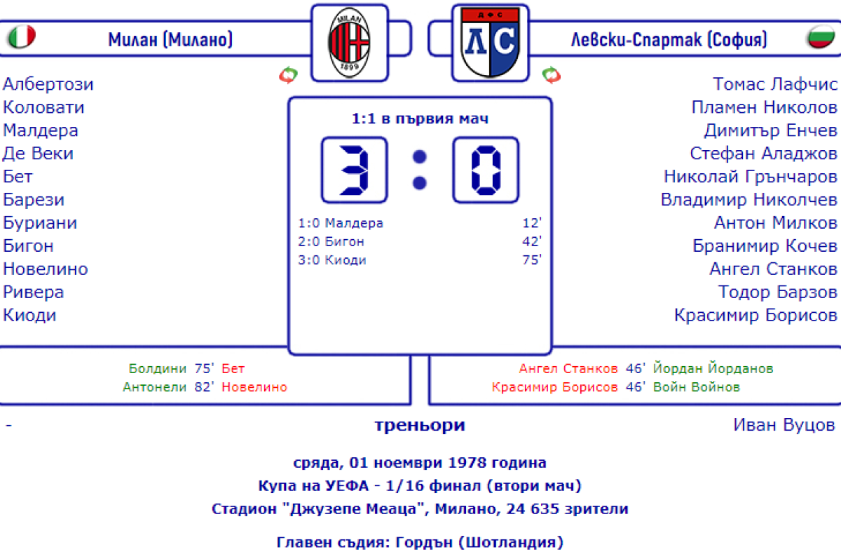 «Милан» Милан - «Левски-Спартак» София - 3:0