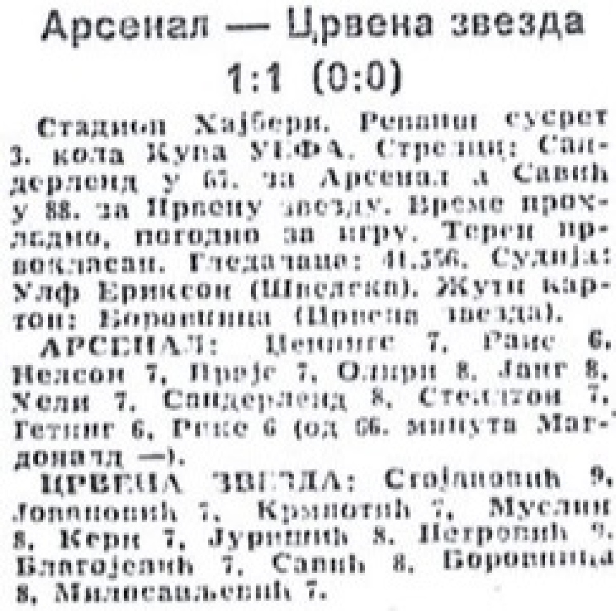«Арсенал» Лондон - «Црвена Звезда» Белград - 1:1