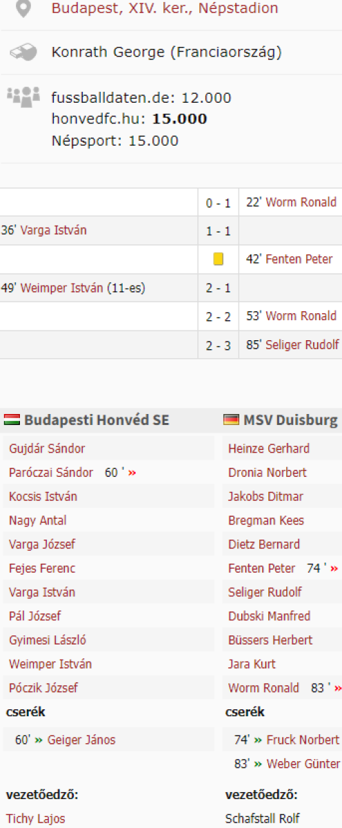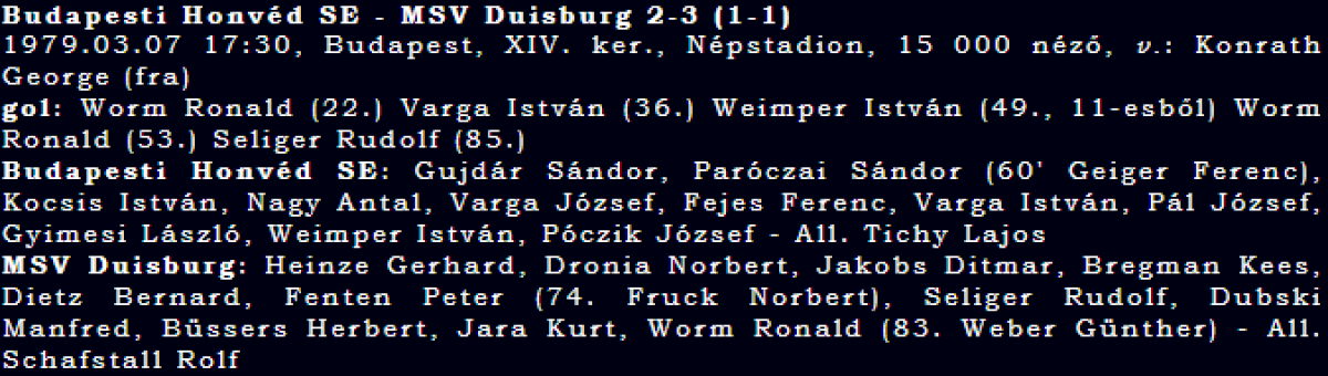 «Гонвед» Будапешт - «Дуйсбург» Дуйсбург - 2:3