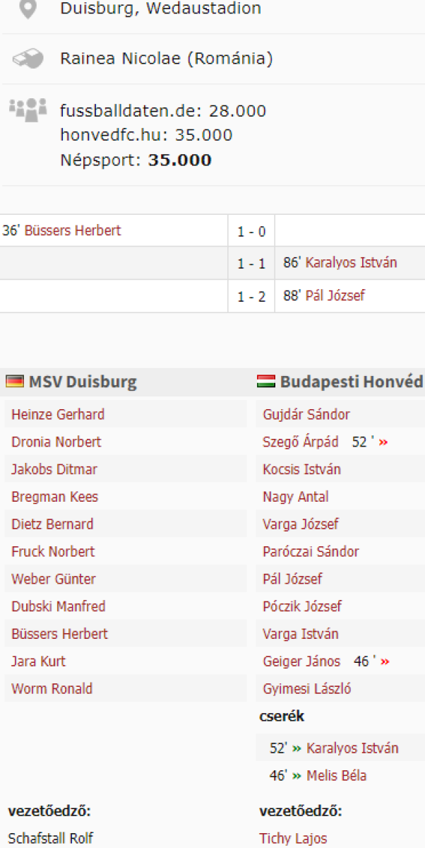 «Дуйсбург» Дуйсбург - «Гонвед» Будапешт - 1:2