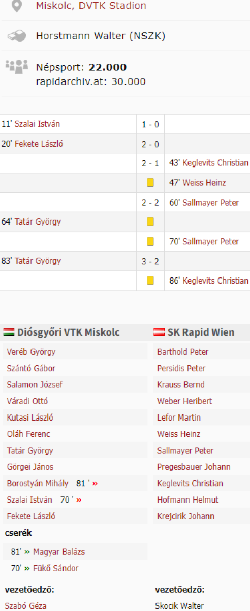 «Диошдьёр ВТК Мишкольц» Мишкольц - «Рапид» Вена - 3:2
