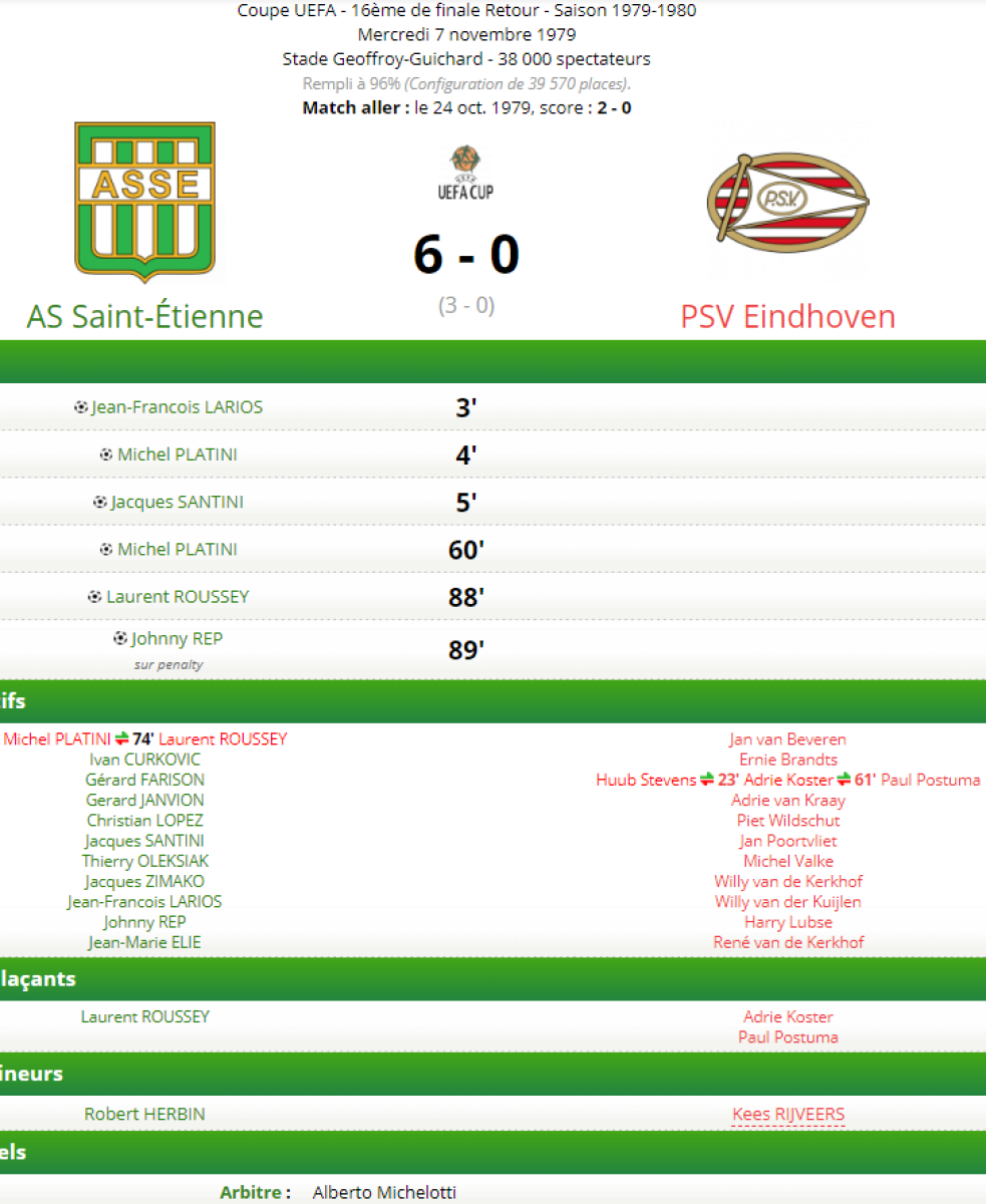«Сент-Этьен» Сент-Этьен - ПСВ Эйндховен - 6:0