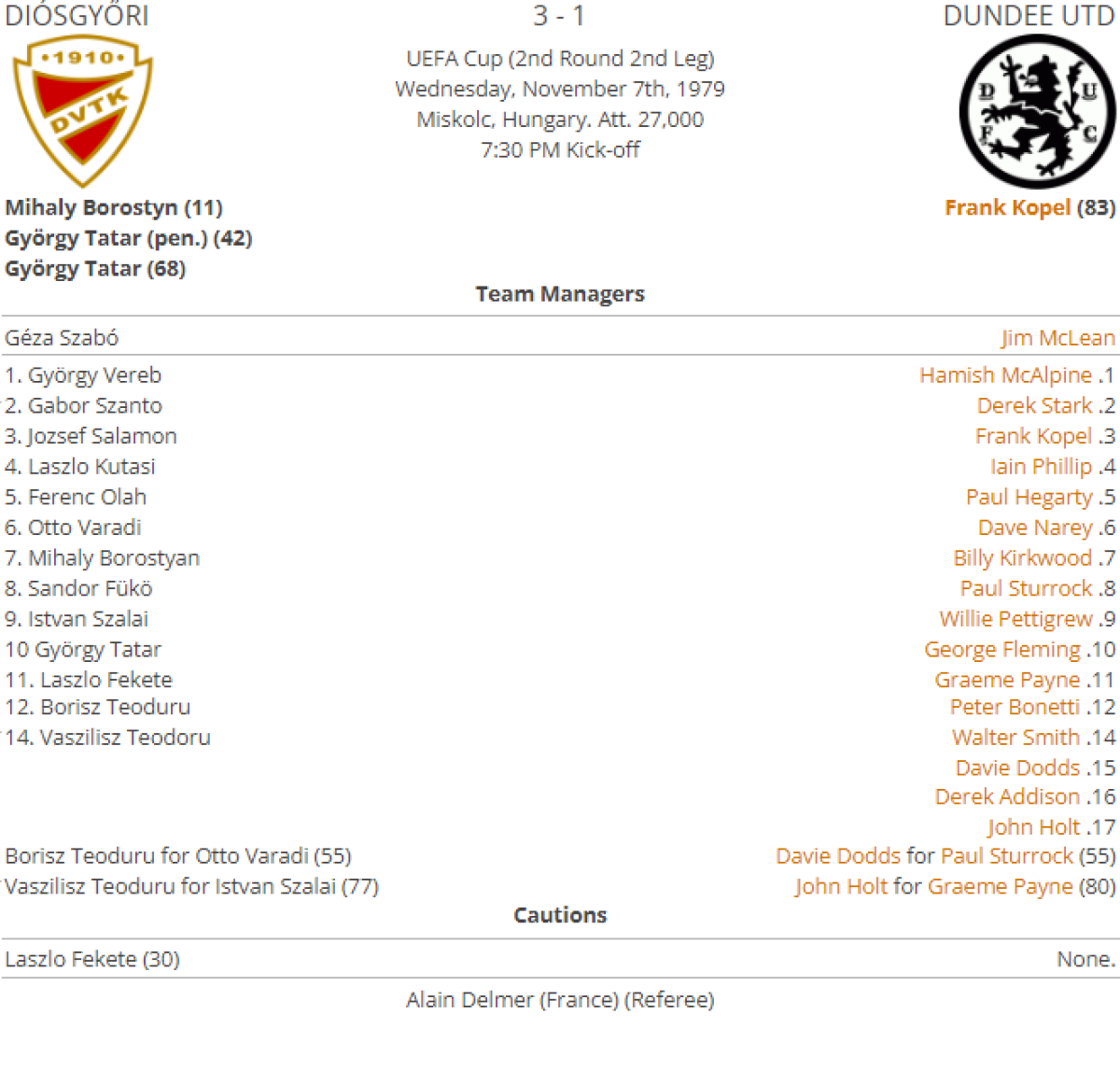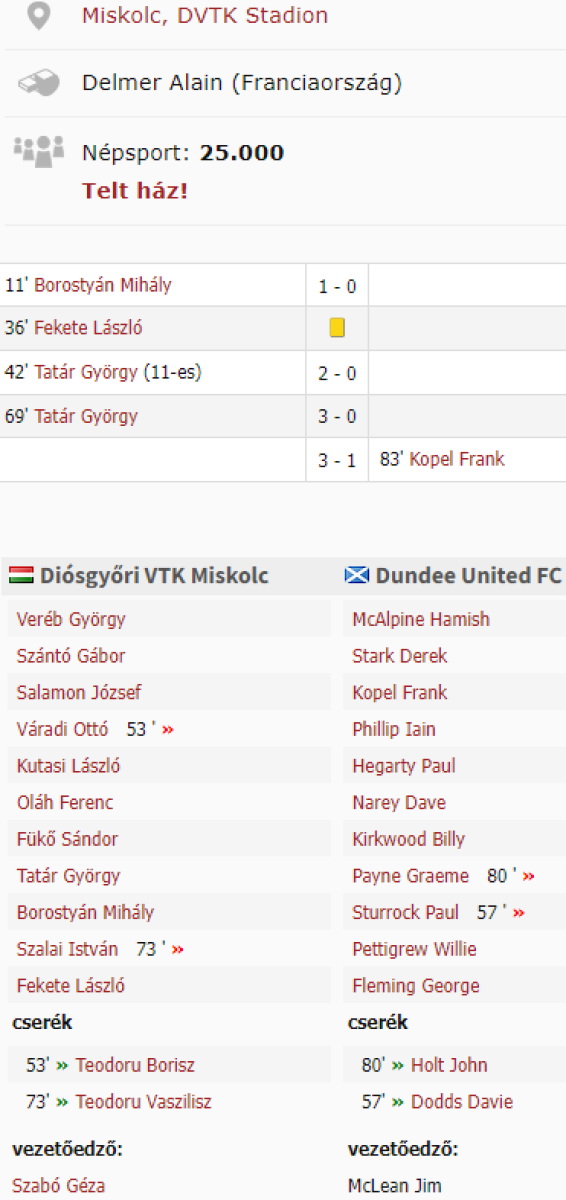 «Диошдьёр ВТК Мишкольц» Мишкольц - «Данди Юнайтед» Данди - 3:1