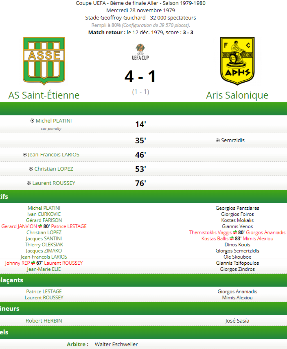 «Сент-Этьен» Сент-Этьен - «Арис» Салоники - 4:1