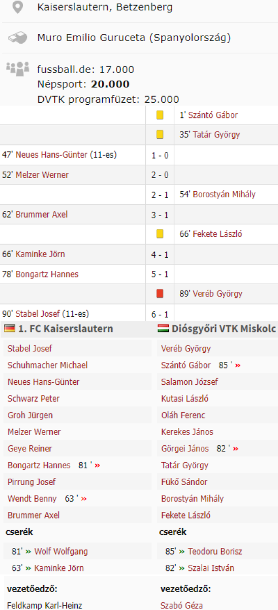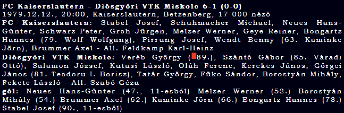 «1. ФК Кайзерслаутерн» Кайзерслаутерн - «Диошдьёр ВТК Мишкольц» Мишкольц - 6:1