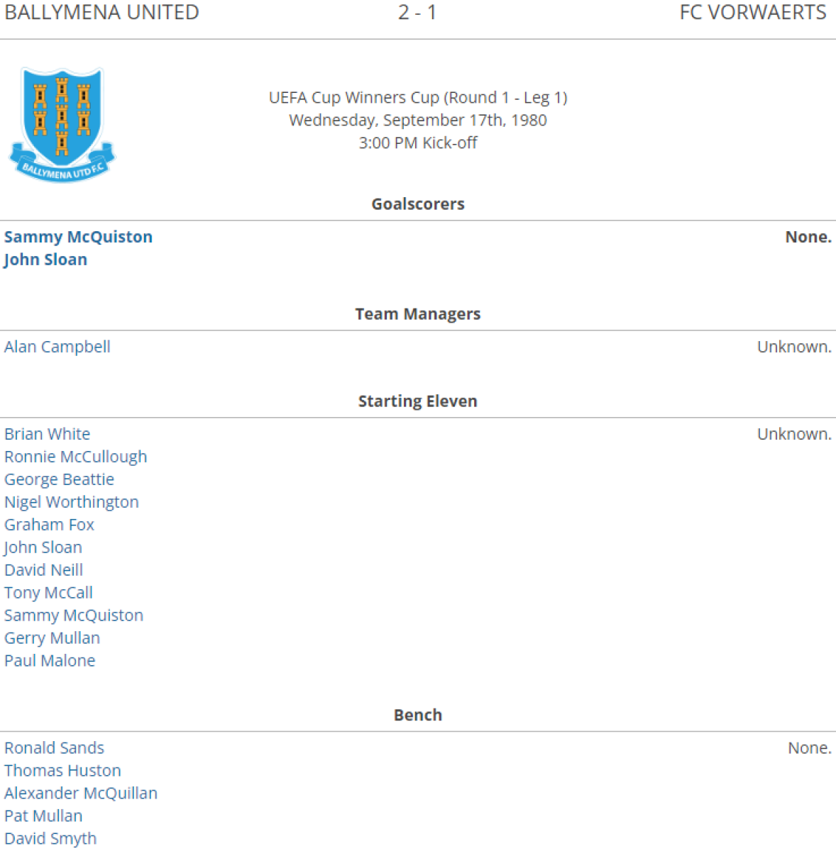 «Баллимена Юнайтед» Баллимена - «Форвёртс» Франкфурт-на-Одере - 2:1