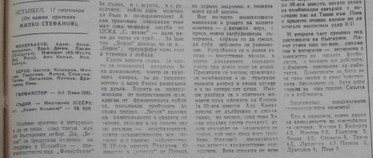 «Фенербахче» Стамбул - «Берое» Стара-Загора - 0:1