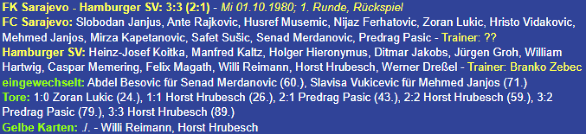 «Сараево» Сараево - «Гамбургер» Гамбург - 3:3