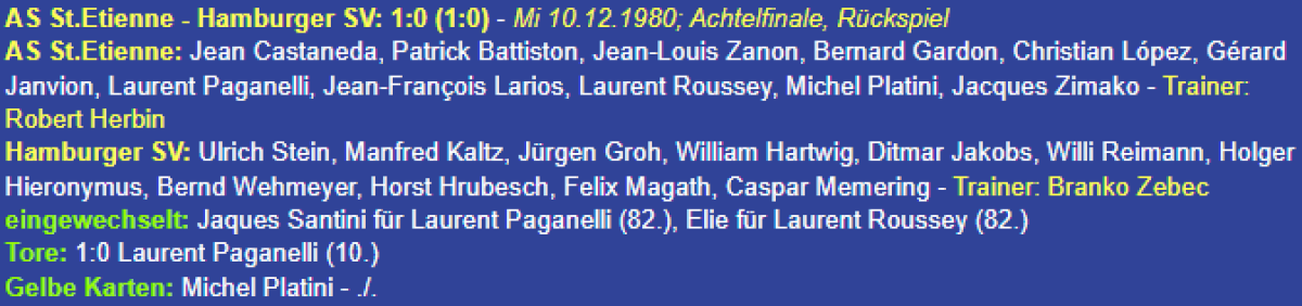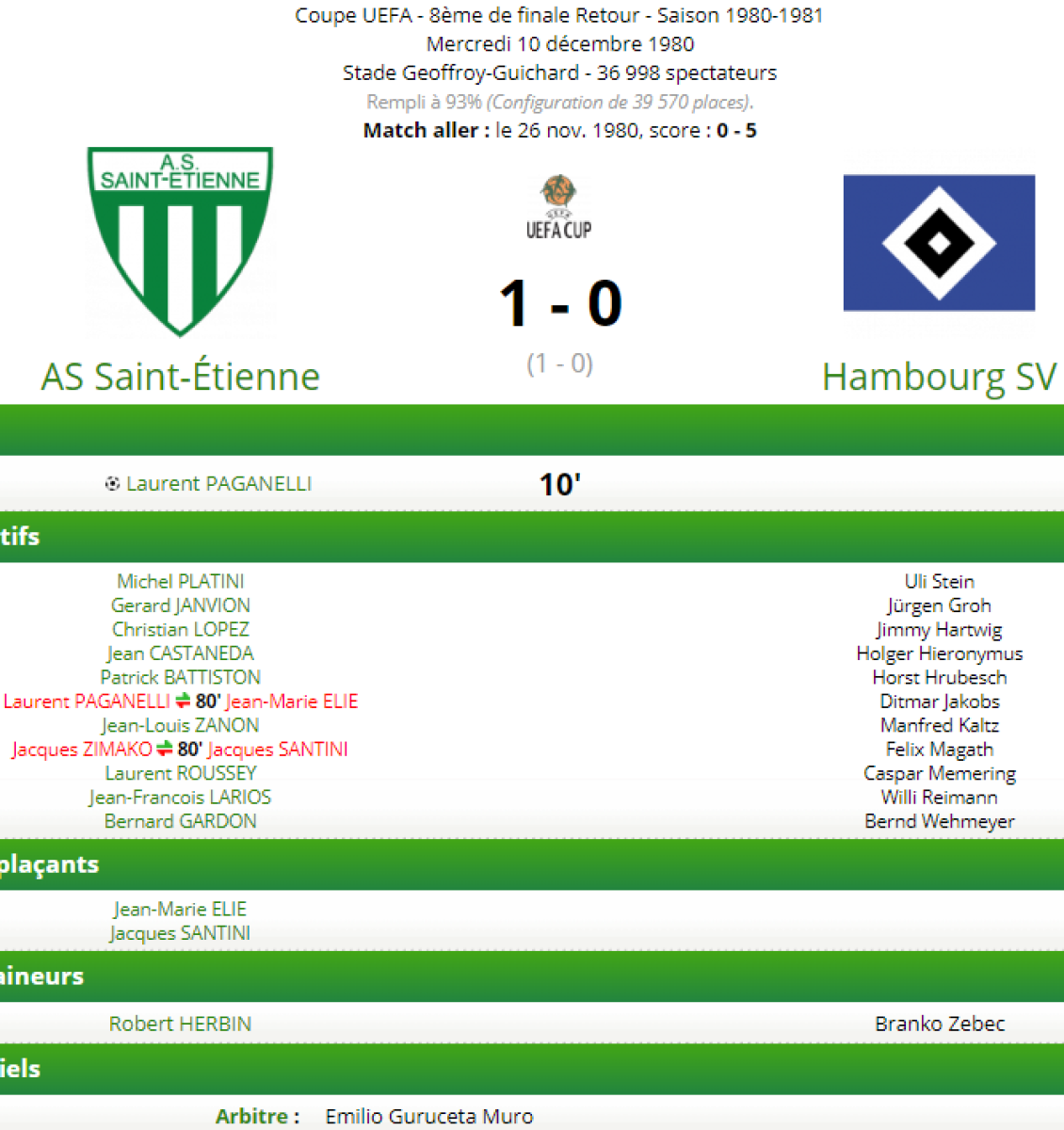 «Сент-Этьен» Сент-Этьен - «Гамбургер» Гамбург - 1:0